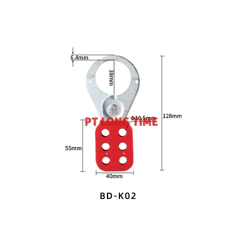The BD-K02 Steel Group Lockout Hasp comes with a larger 1.5" (38mm) inner jaw diameter, designed for group locking by multiple workers. This hasp ensures that equipment stays locked out and safe until the last padlock is removed. It can hold up to six padlocks, making it suitable for larger lockout points.