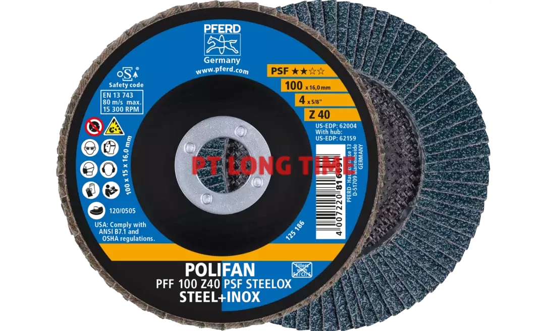 PFERD Polifan Flap Discs PFF 100 Z40 PSF Steelox/16,0 EAN 4007220750117