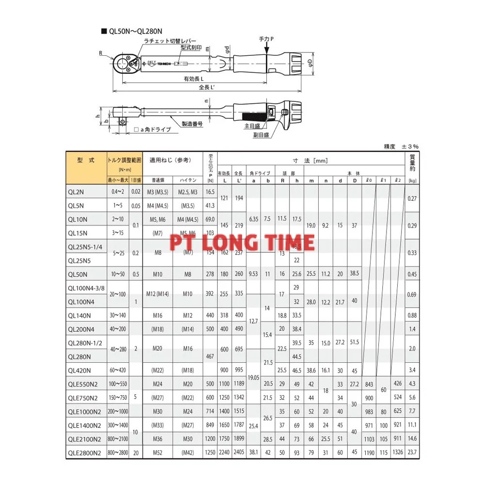 TOHNICHI QL280N1/2 1/2" DR Torqure Wrench 40-280Nm