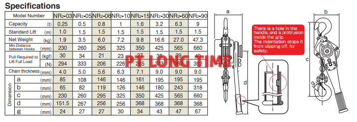 | Pull Required to Lift Full Load | (kgf) | 30 | 34 | 21 | 23 | 27 | 38 | 39 | 40 |