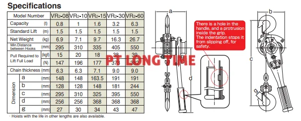 | Pull Required to Lift Full Load | (kgf) | 15 | 20 | 18 | 38 | 39 |