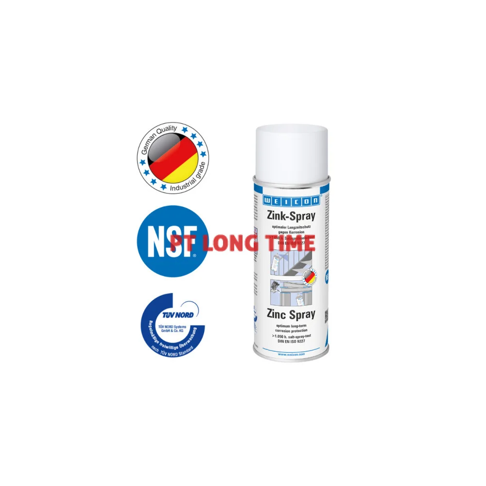 WEICON Zinc Spray is approved by the German TÜV and provides all metal surfaces with a long-lasting cathodic corrosion protection. It forms a fast-drying, adherent protective layer of microfine zinc flakes. Even after more than 1050 hours in the salt spray test according to DIN EN ISO 9227, metal parts coated with WEICON Zinc Spray did not show any signs of corrosion. The zinc flakes form a resistant protective layer even against extreme weather and environmental conditions. That way, WEICON Zinc Spray fulfils higher requirements than those defined by the DIN EN ISO 1461 standard. WEICON Zinc Spray can be used as a high-grade anti-rust primer, for the coating of welded joints and drill holes, as a conductive intermediate layer for spot welding and wherever metal must be protected against corrosion.
