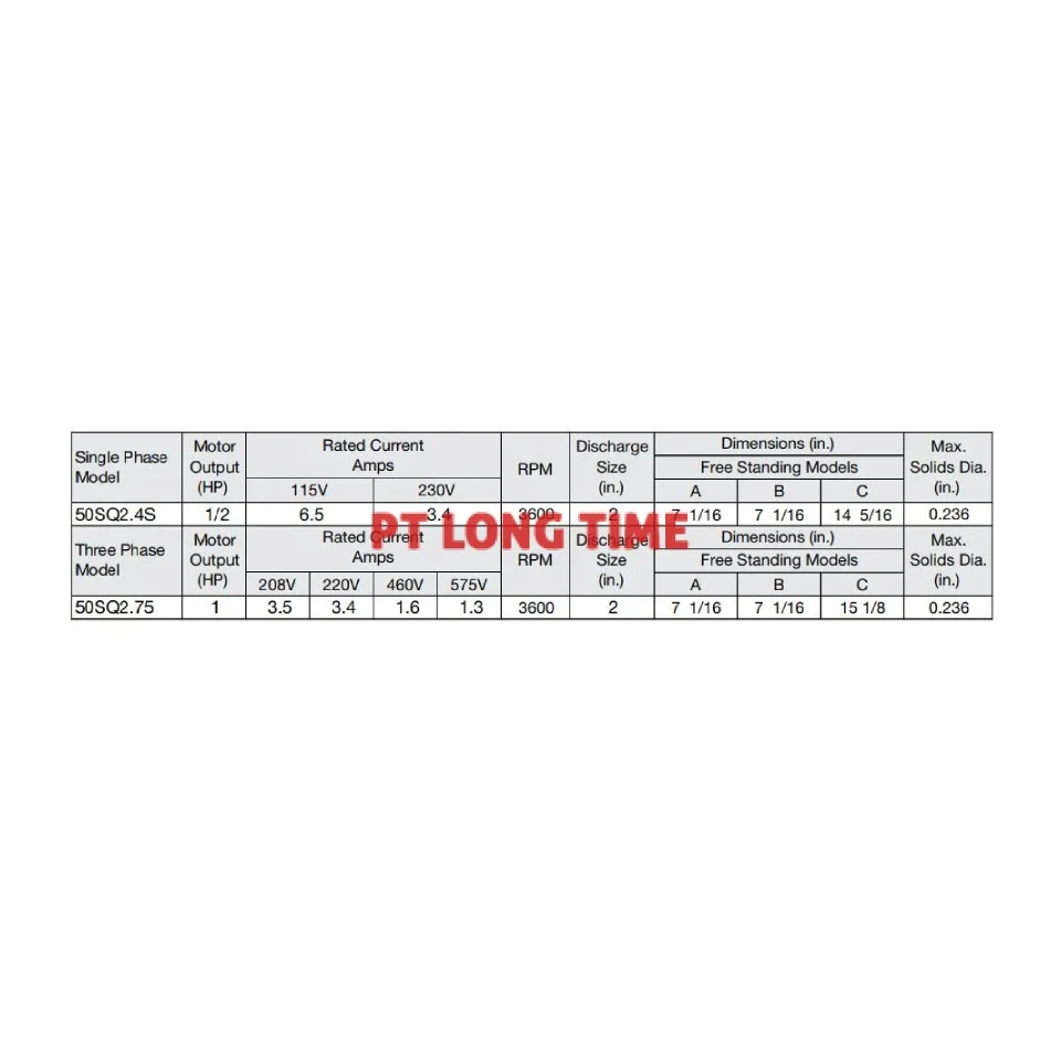 Corrosion Resistant Pump 50SQ2.75 3Phase 0.75KW 415Volt
